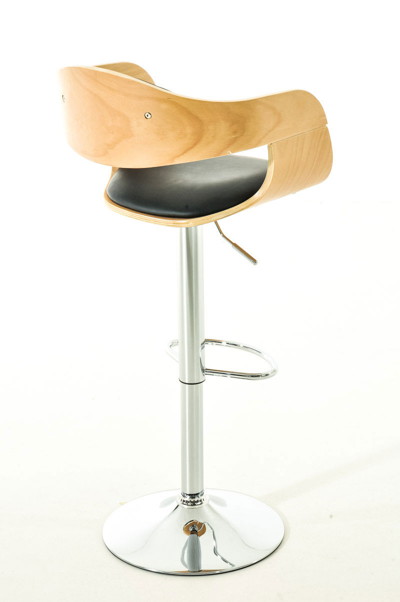 Dieser Design Barhocker verleiht jeder Theke einen exklusiven Look. Er besticht nicht nur durch hervorragende Sitzeigenschaften, sondern auch durch sein modernes Design. Die Sitzfläche und Rückenlehne des Holzsitzes sind gepolstert mit einem Qualitätsbezug aus Kunstleder überzogen. Das Gestell besteht aus Metall in Chromoptik und lässt sich schnell und einfach reinigen.