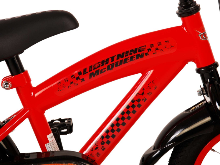 Fahrradfahren zu lernen braucht Zeit, Mut und Ausdauer! Aber mit Lightning Mcqueen an deiner Seite wird es schon klappen! Das rot-schwarze Cars Kinderfahrrad von Disney (mit einer Laufradgröße von 12 Zoll) ist perfekt für Radfahranfänger. GUT LAUFEN Eine gute Basis ist der Anfang von allem! Deshalb wurden für dieses Kinderfahrrad nur die besten Materialien verwendet. Der Stahlrahmen garantiert eine sichere und robuste Qualität. Die abnehmbaren Seitenräder dienen als zusätzliche Hilfe. Außerdem verhindert der geschlossene Kettenkasten Risse und Schmutz in der Kleidung. Superschnell, aber sicher unterwegs Dieses superschnelle Cars Fahrrad fällt sofort ins Auge! Sehr empfehlenswert für Fans des gleichnamigen spannenden Films. Mit einer Radgröße von 12 Zoll ist das Fahrrad schon für die Allerkleinsten geeignet. Die Kneifbremse am Vorderrad hilft, die Geschwindigkeit zu reduzieren, und die Rücktrittbremse stoppt Sie innerhalb von Sekunden. Wachstumsfahrrad! Wie schnell sie groß werden! Und ihnen jedes Jahr ein neues Fahrrad zu schenken, das ist nichts, was sie wollen. Daran haben wir gedacht. Das Cars Fahrrad hat sowohl einen verstellbaren Sattel als auch einen verstellbaren Lenker! So hat Ihr Kind besonders lange Freude daran. Los geht’s! Wir können uns alle noch gut daran erinnern, an die erste Runde auf dem Fahrrad. Und wie wichtig es war, das perfekte Fahrrad mit einem coolen Look zu finden. Deshalb ist das Cars Lightning Mcqueen Jungenfahrrad von Disney das ideale Kinderfahrrad, um echte Höchstgeschwindigkeiten zu erreichen! Allgemeine Spezifikationen: Farbe: rot, schwarz Geschlecht: Jungen Material Rahmen: Stahl Material Felgen: Stahl Bereifung: Luftreifen (schwarz) Altersangabe: 2 bis 4 Jahre Maximale Belastbarkeit: 60 kg Gewicht: ca. 9,6 kg Spezifische Größen: Radgröße: 12 Zoll Rahmengröße: 23 cm Innennahtlänge: 43-47 cm Geeignet für Körpergröße: 90-105 cm Verstellbare Sattelhöhe: ja, 38-42 cm Höhenverstellbarer Lenker: ja Bremsspezifikationen: Vordere Bremse: Pinch-Bremse Bremstyp hinten: Rücktrittbremse Beleuchtungs-Spezifikationen: Beleuchtung vorne: Reflektor Beleuchtung hinten: Reflektor Spezifikationen Zubehör: Schutzbleche: ja, über Vorder- und Hinterrad Seitenräder: ja, abnehmbar Kettenschutz: geschlossen Lenkrad: ja
